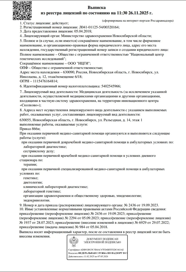 Центр «ДТЛ» предоставляет услуги по продаже исследований ДНК на всей территории России. Наши лаборатории-партнеры работают на современном оборудовании от «Applied Biosystems», ведущего производителя в сфере биотехнологий и генетики, который гарантирует достоверный результат исследования. Высокотехнологичные методы исследования наших партнёров и наличие лучших специалистов, включая мировых экспертов с более чем 20-летним опытом в исследованиях ДНК, гарантируют высший стандарт исследования и точный результат.